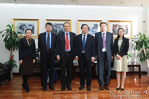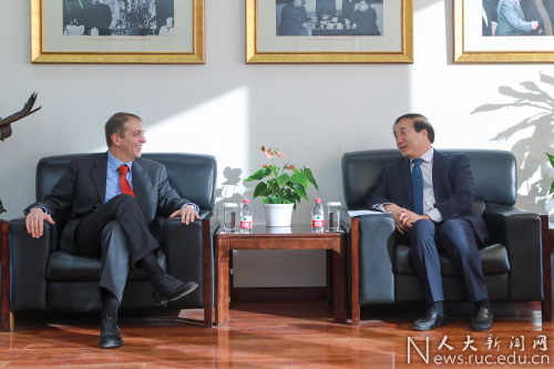 12月6日下午,中国人大学副校长杜鹏会见了来访的意大利路易斯大学国际事务副校长拉斐尔·马尔凯蒂(Raffaele Marchetti),双方就落实两校战略合作伙伴关系等事宜进行了会谈。