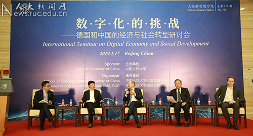 中国人民大学党委常务副书记张建明致欢迎辞,副校长吴晓球出席圆桌研讨。中国人民大学财政金融学院院长庄毓敏主持会议,国际货币研究所(IMI)联席所长贲圣林主持研讨。热巢集团(Hotnest)联合创始人法比安·冯·亨布格尔(Fabian von Heimburg),出门问问(Mobvoi)创始人兼CEO李志飞等来自中德两国科研机构、政府管理部门和媒体机构的150余位专家学者参加会议。本次会议由中国人民大学主办,财政金融学院、国际货币研究所联合承办。