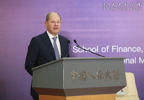 1月17日,德国副总理、财政部长奥拉夫·舒尔茨(Olaf Scholz)做客“数字化的挑战——德国和中国的经济与社会转型”研讨会暨大金融思想沙龙“全球领袖”系列第二期(总第113期),并作主题演讲。