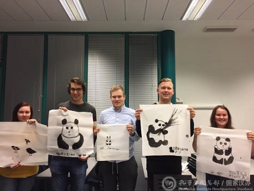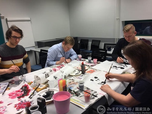 在教师的指导下,学生们从最容易学习的象形文字开始,体验中国书法艺术的变迁和发展。从可爱的熊猫到雍容华贵的牡丹,芬兰学生初步领略了中国传统绘画艺术的魅力。