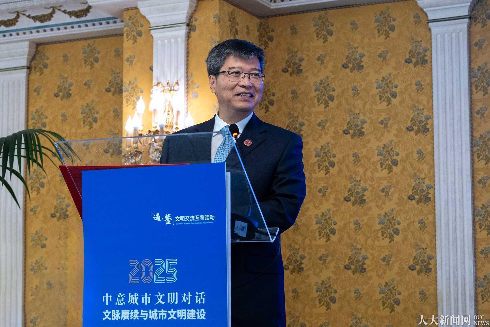 林尚立在主旨演讲中指出,中华文明“和而不同”与欧洲文明“多元一体”价值内涵相通,站在中意建交55周年的新起点上,中意在文化传承发展与城市文明建设方面开展对话、深化合作,是文明交流互鉴的生动实践,有助于夯实中意关系发展的民意基础。他强调,中意两国作为东西方文明发源地,应在文化遗产保护、城市治理、可持续发展等领域加强交流合作,共同培育具备国际视野的青年人才,共建多层次、宽领域的城市文明对话机制。中国人民大学开创了“北京记忆”大型数字记忆项目,用数字技术保护城市历史、展现城市文明;同时,学校以“人大智慧”助力北京建设国际绿色经济标杆城市。未来,愿与中意各界伙伴携手共进,共同将全球文明倡议的理念转化为务实行动,共同构建多层次、宽领域的城市文明合作网络,为推动中意关系继往开来、增进两国人民共同福祉、促进人类文明进步繁荣贡献新的更大的力量。