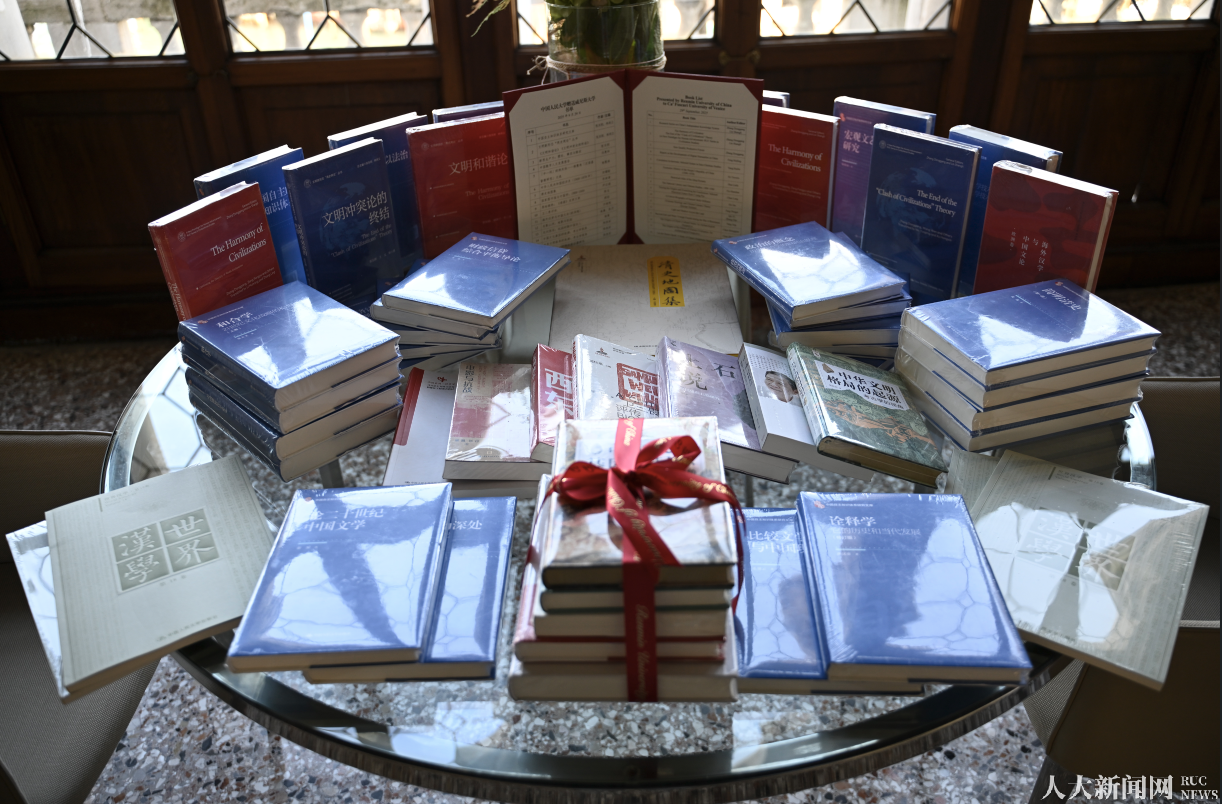 林尚立代表学校向威尼斯大学捐赠《中国自主知识体系研究文库》《文明和谐论》《文明冲突论的终结》《清史地图集》等图书。