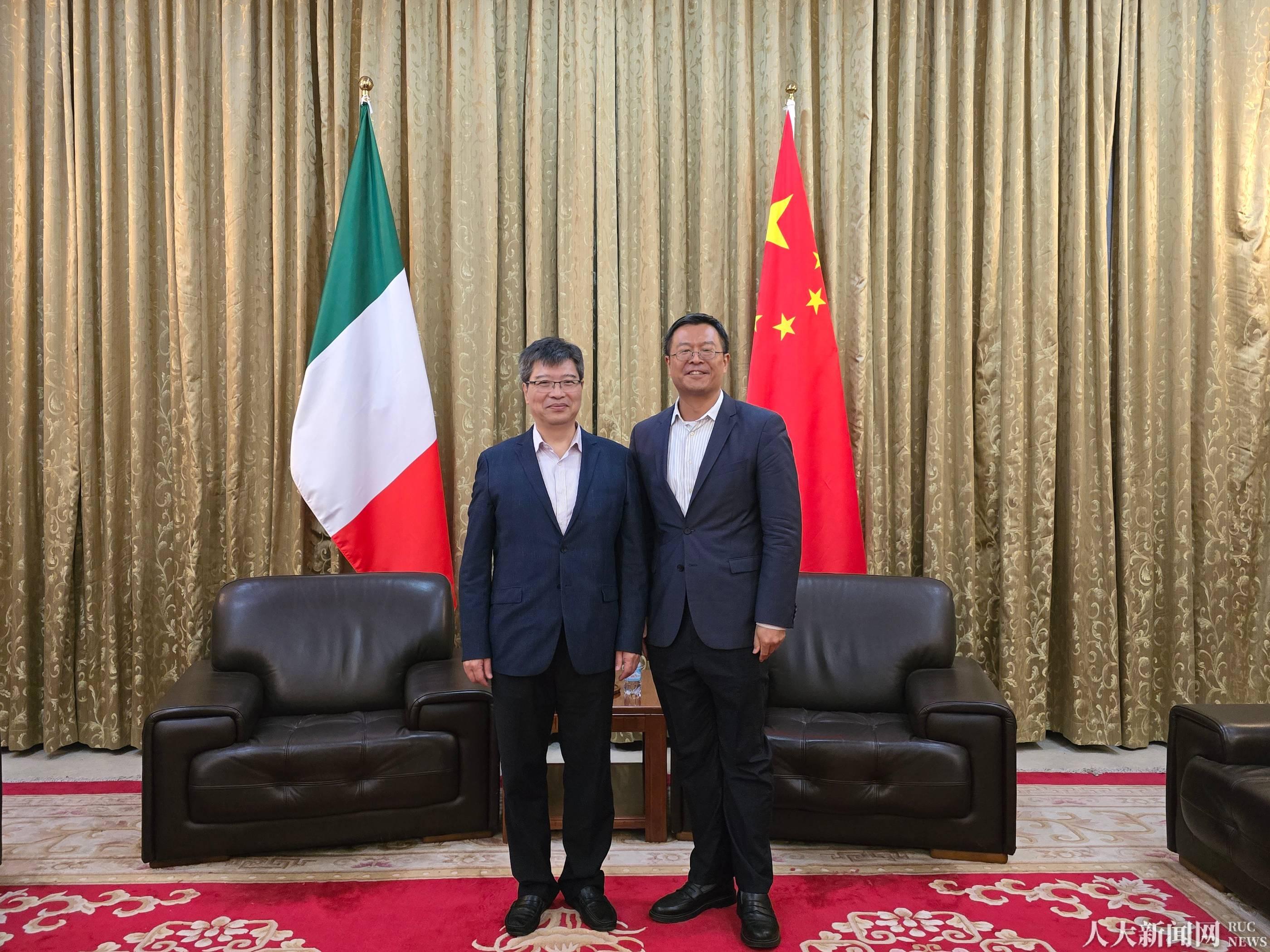 访问期间,林尚立拜访中国驻意大利大使馆临时代办李小勇,双方围绕中国人民大学与意大利高等教育机构合作重点、意大利高等教育现状等议题展开交流。