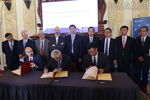 罗平、中国人民大学国际交流处副处长齐悦,博洛尼亚大学孔子学院中方院长许颖和实习院长吴倩等参加签约仪式,中央电视台、新华社、人民日报、光明日报等中国媒体和意大利当地媒体以及LUISS大学师生代表等中意各界友好人士50多人参加活动。