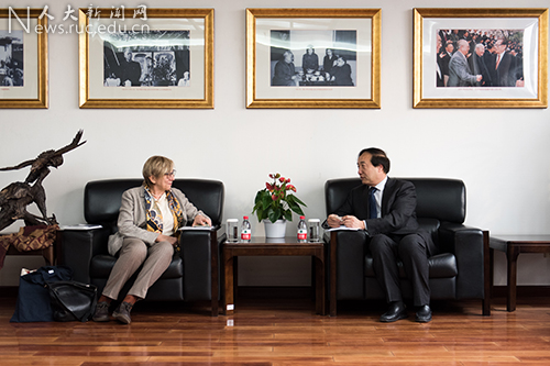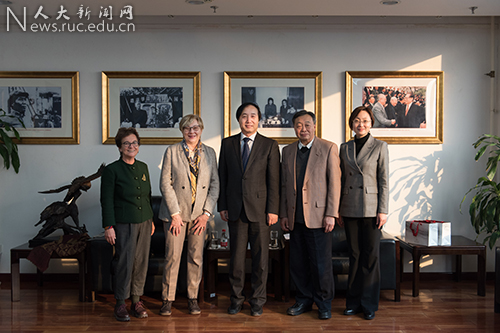 12月14日,中国人民大学副校长杜鹏会见了来访的意大利那不勒斯东方大学校长埃尔达(Elda Morlicchio)。那不勒斯东方大学亚非及地中海系副教授巴德妮(Paola Paderni )一同来访。
