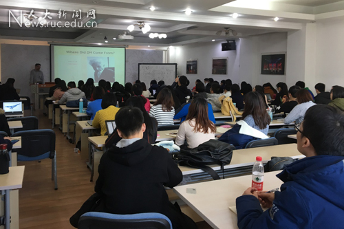 11月15日下午,Ben Alexander博士在信息楼作“History Bytes:Perspectives on the Future of Digital Humanities(历史字节:数字人文的未来展望)”的学术讲座,张斌主持讲座,王健教授担任互动环节主持人。信息资源管理学院师生,“数字记忆”人才培养计划两期学员,总计近100人参与了此次讲座。