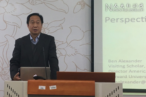 讲座中,Ben Alexander博士讲述了他本人对数字人文的理解,他认为数字人文是一个没有中心的交叉学科领域,到目前为止,在很多领域并没有明确的界定。他向大家介绍了数字人文的主要领域,并结合自己的数字人文研究项目“The American Century Project(世纪美国)”,向大家表明数字人文的未来就在于交叉学科和全球合作,这样可以多维度的对历史进行展示和分析。
