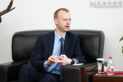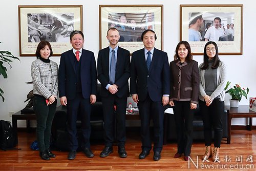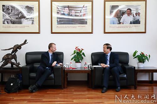 英国谢菲尔德大学北京办公室刘宇宁一同来访。中国人民大学科研处副处长刘金龙、国际交流处副处长张大淼等参加会见。