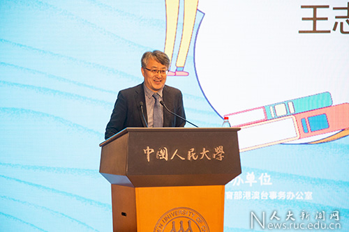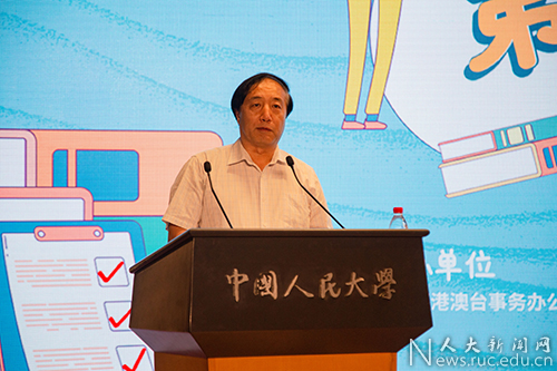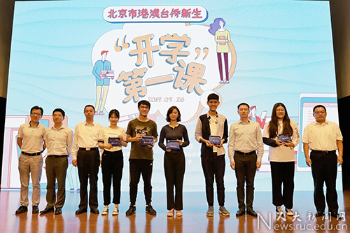 筑梦青春,扬帆启航。在新中国成立70周年之际,北京市港澳台侨新生“开学第一课”于9月26日在中国人民大学举办。本次活动由教育部港澳台事务办公室主办、北京市港澳台侨学生教育管理研究分会、中国人民大学承办。教育部港澳台事务办公室副主任王志伟、中央人民政府驻香港联络办公室北京办事处副主任苏玉军、北京市人民政府台湾事务办公室副巡视员赵孝清、中国人民大学副校长杜鹏、中央人民政府驻澳门联络办公室北京联络部处长周鑫、中国人民大学法学院教授、全国人大常委会香港基本法委员会委员韩大元、中国人民大学港澳台办公室主任时延安、国务院台湾事务办公室交流局副处长毛玉峰、中央人民政府驻香港联络办公室北京办事处交流处副处长高姗、北京市教育委员会港澳台侨办公室副主任殷昊等嘉宾以及来自北京市28所高校的老师和港澳台侨新生近200人出席活动。