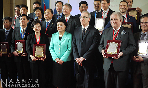 人大中法学院获“中法大学合作优秀项目” 刘延东副总理为靳诺书记颁奖
