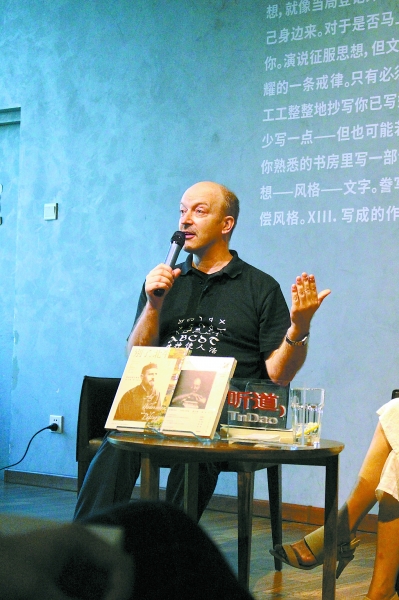 7月中旬,有着中文名的奥地利人雷立柏推出了他的随笔集《我的灵都》。他穿着一件印着不同文字的T恤出现在单向街爱琴海店活动现场,与读者互动交流。他那件需要解读的衬衫,上面的字其实是同一个意思:“精神使人活”。由此展开的话题,也跟这几种语言有关。说一口流利中文的雷立柏,在北京已经生活了22年,任教于中国人民大学,且教的是拉丁语、古希腊语和古希伯来语。他对北京的热爱以及历史地理的谙熟,都在这本新书中体现得淋漓尽致,他还提供了一个特殊视角,让我们不仅是从外国人的眼光,而且是从语言学、与外国人相关的历史的角度,打量这座城市,思考一种语词的来路。