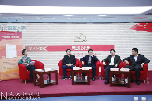 10月15日,为迎接党的十九大的胜利召开,中国人民大学出版社、中共中央党校科研部、长安街读书会、共青团中央联合主办的“中国道路 世界贡献”读书会在团中央网络影视中心举行。由中共中央党校校委委员、副教育长兼科研部主任韩庆祥教授领衔,包括中共中央党校陈曙光教授、中共中央党校刘晨光副教授和中共中央党校黄相怀副研究员在内的学术团队,以《中国道路能为世界贡献什么》一书为依托,从书本到实际、从理论到实践,与现场数十位观众一起,纵论中国道路的世界贡献和世界意义。