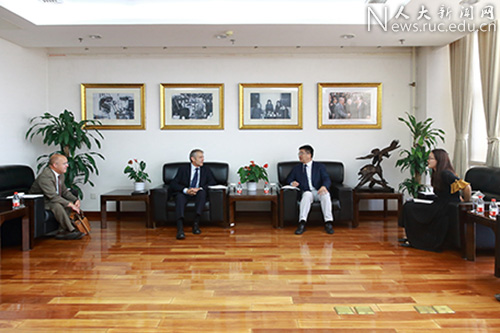 中国人民大学商学院院长毛基业、财政金融学院金融货币系系主任张成思、国际交流处副处长程鑫等参加会见。