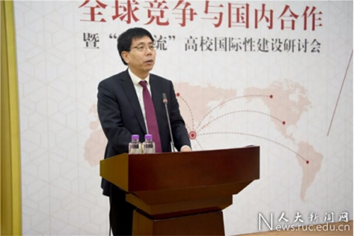 郑水泉代表中国人民大学对教育部国际合作交流工作各相关部门与单位的负责同志以及“双一流”建设高校代表的到来表示欢迎。郑水泉介绍了学校在国际性建设方面的情况,并指出国际性建设是学校的中心工作之一,是一个系统性工作,也是一个复杂的工作,需要学校各部门认真思考,创新务实,以“双一流”建设为主体,立足学校学科优势和特色,通力合作、精准推进,努力推进学校国际性建设的全面提升。