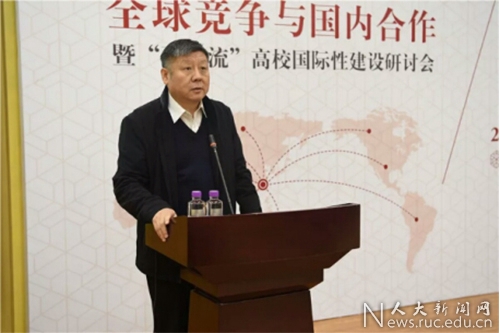 郑水泉强调,一是要把握国际性建设的定位,提升国际影响力。二是要聚焦国际性建设的核心,提升学科竞争力。三是要夯实国际性建设的基础,提升项目吸引力。推进国际交流合作,既要做好顶层设计、整体谋划,更要精选项目、落地落实。推出和完善一批国际合作项目,打造国际合作教育品牌。四是要完善国际性建设的机制,提升资源配置力。把国际交流合作工作合理地规划到“双一流”建设中去,协调全校资源,将国际合作交流与学科建设、高水平师资队伍建设、人才培养等工作有机整合起来,构建完善“大外事”工作机制,把优质资源配置到国际交流合作上来,为国际交流合作提供有力的保障。他表示,人民大学将积极促进“双一流”建设高校展开交流和研讨,构建“双一流建设高校朋友圈”,助力“双一流”建设高校发展,与大家一同增进共识,加强合作,扎实做好新时期教育对外开放工作,努力提升中国高等教育综合实力和国际竞争力。