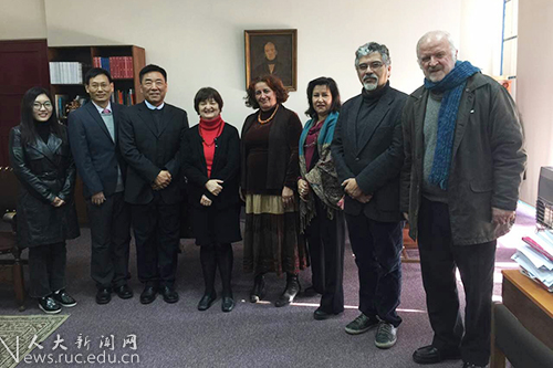 会面中,王建平常务副院长介绍了中国人民大学和外国语学院的历史、发展现状及西班牙语系的基本建设情况,刁克利副院长介绍了人民大学的师资引进模式。随后,双方就学生交换、教师交流等问题展开探讨。对方院校表示期待与中国人民大学开展学生交换项目,对教师互访活动充满兴趣,并希望和人民大学西班牙语系进行科研合作。