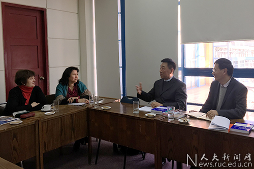 6月29日,代表团访问了智利安第斯大学,应邀与安第斯大学校长José Antonio Guzmán、 副校长María Teresa Correa 进行会谈。安第斯大学校长对中国人民大学代表团的到来表示欢迎,双方就学生交换和教师交流等内容进行探讨,并达成合作共识。