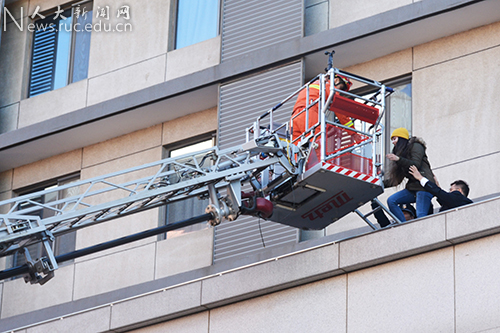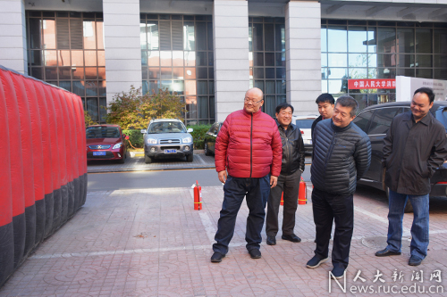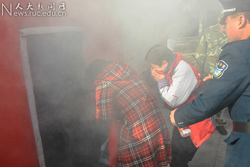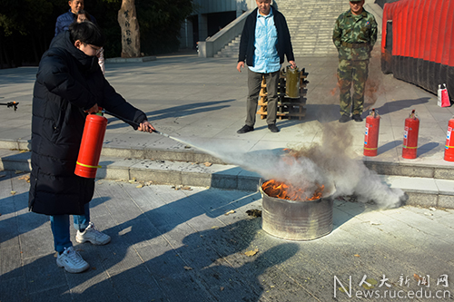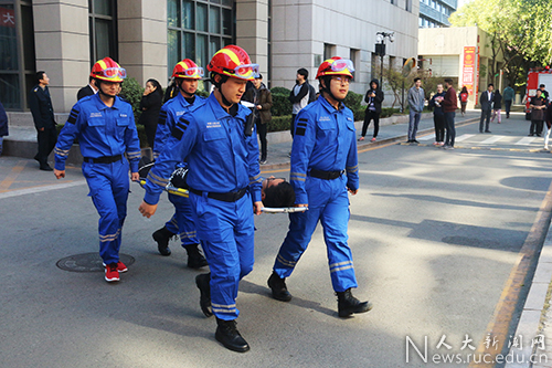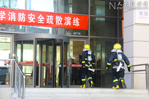 中国人民大学副校长贺耀敏出席11月9日的消防演习活动,学校防火委员会相关部门负责人一同观摩。