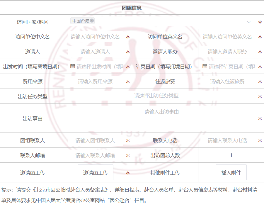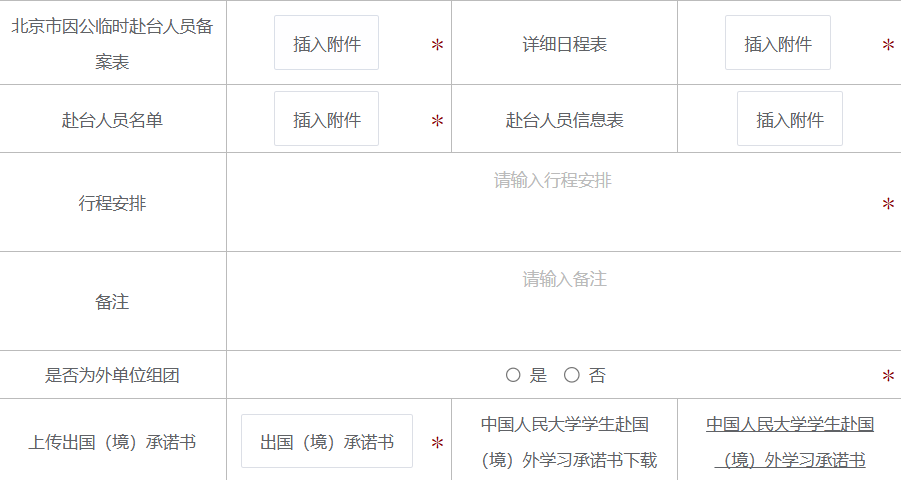 ①北京市因公临时赴台人员备案表