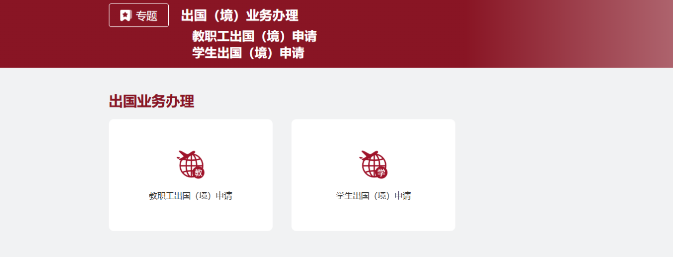 1.申请人登录微人大,依次选择:【服务—综合服务中心网上办事大厅—出国(境)业务办理】,教工与学生需分开申请: